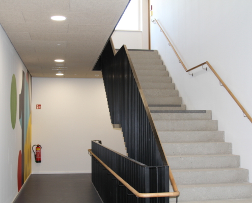 Nach rund zwei Jahren Bauzeit konnte die Grund- und Mittelschule in Füssen nun den Betrieb in der neu errichteten Turnhalle sowie der modernen und lichtdurchfluteten Mensa aufnehmen. Die neuen Gebäudeteile zeichnen sich durch eine offene, helle Architektur und eine hohe Aufenthaltsqualität aus – ein großer Gewinn für den Schulalltag.