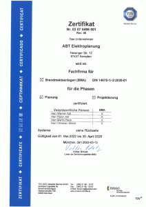 Fachfirma für Brandmeldeanlagen Zertifizierung nach DIN 14675-1/-2:2020-01