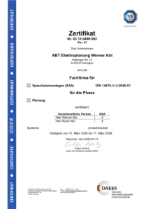 Fachfirma für Sprachalarmanlagen (SAA) für die Phase – Planung mit stetiger Rezertifizierung